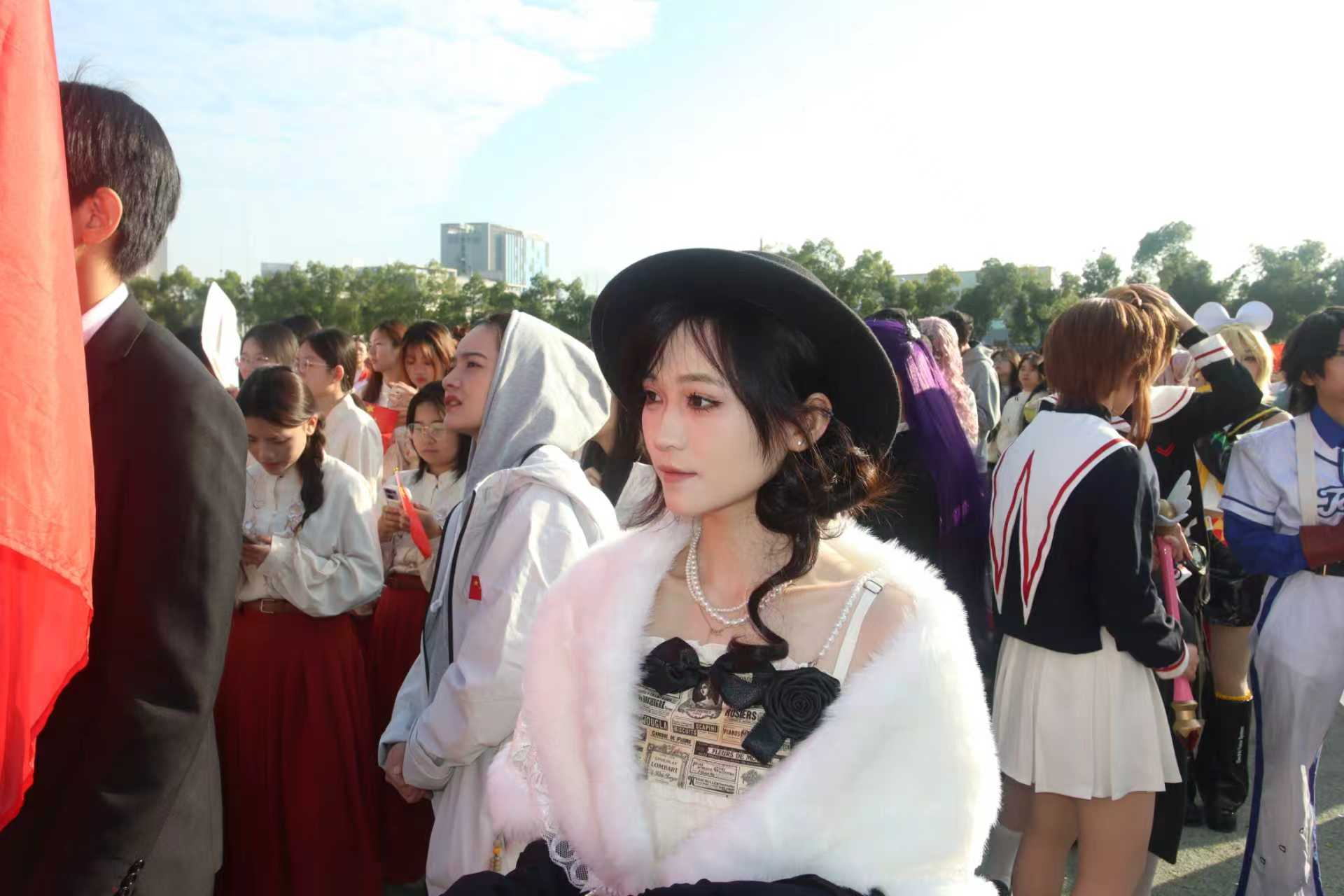 方阵学子们化身热门动漫主角、经典游戏角色与原创设计形象,从灵动的古风二次元人物到酷炫的科幻角色,造型精致考究,细节还原度拉满——手绘的角色道具、定制的服饰纹样、贴合角色的妆容造型,尽显艺术设计专业的审美与巧思。