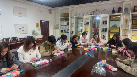 在作品分享环节,同学们纷纷展示自己的创作成果,讲述作品背后的故事与心路历程。有的同学通过捏制“并肩的伙伴”表达对友谊的珍视,有的同学以“层层绽放的花朵”比喻自己的成长过程,现场氛围温馨而热烈。