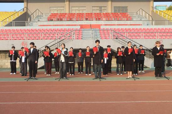 10月27日,学校在流芳校区田径场开展“弘扬伟大抗战精神,谱写青春报国华章”主题升旗仪式暨“国旗下的思政课”活动。校团委书记邓欢、宣传部副部长赵小硕、学工部副部长陈俊、研工部副部长张琼、保卫部副部长郭洪伟、马克思主义学院教师韩雪吟,光电信息与能源工程学院、数理学院、艺术设计学院、化学与环境工程学院党委副书记及各学院辅导员、学生代表参加了活动。
