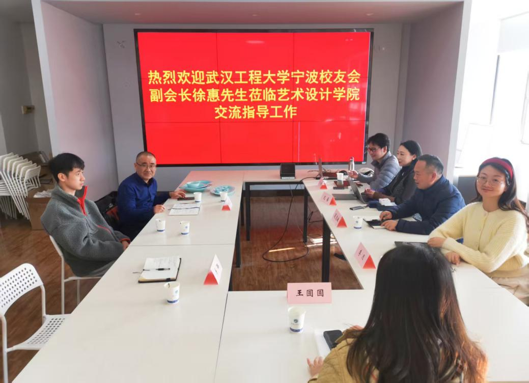 本网讯(通讯员 易璐)12月19日上午,武汉工程大学宁波校友会副会长徐惠先生来艺术设计学院进行交流座谈。艺术设计学院党委书记夏志敏、副院长李月、工会主席曾曦,以及教师代表范蓓、王圆圆、易璐等共同出席交流活动。活动由夏志敏主持。