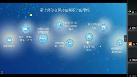 姚晓东首先讲述了什么是设计,设计是解决问题的一种方法。设计的内核就是设计思维+设计方法。接着解释了设计思维是发现问题、寻找方法、解决问题、效果评估。每一个当中的每一步都需要一步一步完善,如发现问题中信息的梳理就及其重要,因为它是好设计的开端等等,之后讲述了设计方法,如以人本为中心的设计方法,洞察人内心需求,消费需求等等,还有五感+加减法;接着讲了设计师怎么保持创新设计的思维;以及设计中的设计驱动即从设计表现到设计思维到设计方法,再到设计责任与价值。设计中各方面的主要问题疑惑姚晓东先生都详细向学生们讲解了,在分享结束后,姚晓东先生耐心解答部分同学的疑惑。