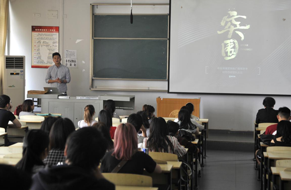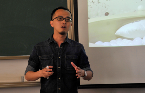 设计总监刘欢先生做了题为“传媒的创作故事”的报告。他那风趣幽默的演讲风格给同学们讲述了另一个项目“恩施坪坝营旅游品牌”的整体打造,从项目品牌构架的产品力、品牌内核和构成基因等几个方面展开介绍,讲述了怎样给特色小吃或商店起一个记忆尤新的名称;坪坝营老街多套标志设计方案的构思、推导及设计过程。刘总监还和同学们分享了信息化时代平面设师们站稳脚跟的方法——创意为先。