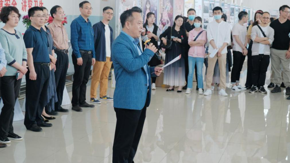 校党委副书记李志旭宣布“2021届武汉工程大学艺术设计学院毕业设计作品展”开幕。