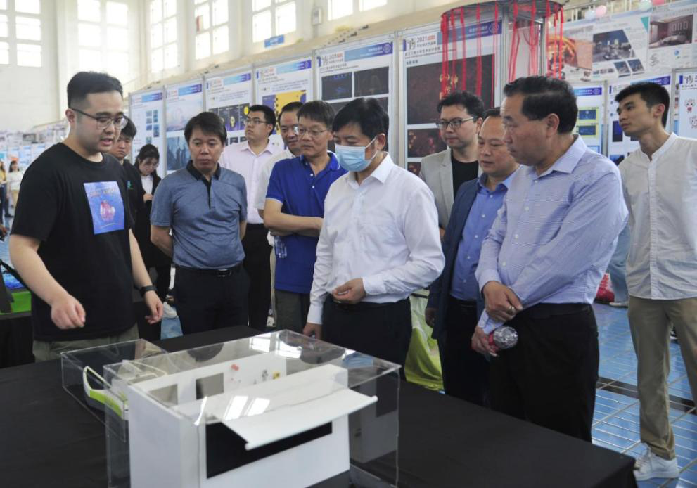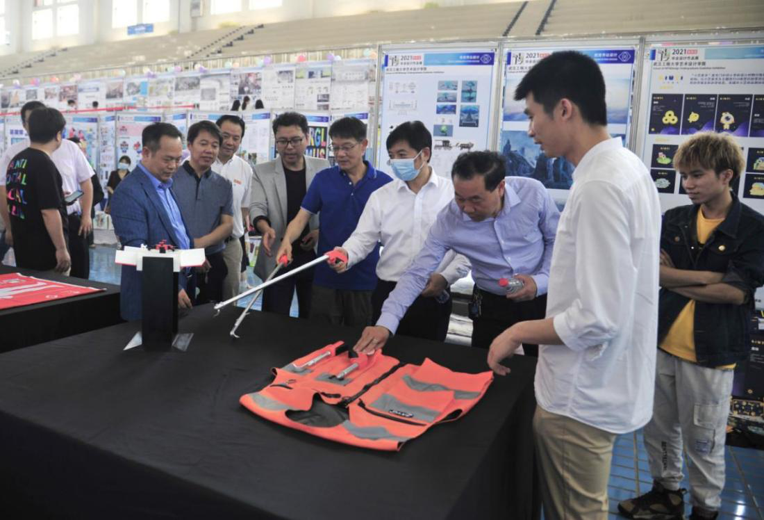 (通讯员:李想 盛典)5月8日上午9:00,武汉工程大学艺术设计学院“踏浪前行”2021届本科生毕业设计作品展在流芳校区游泳馆拉开帷幕。武汉工程大学校党委书记程幼金、副书记李志旭、副校长方文海出席,部分职能部门负责人、艺术设计学院领导班子成员及相关专业指导老师、部分学生家长和企业代表武汉市广告协会副会长柯妍、湖北联投置业运营总监刘欢等参加。艺术设计学院2021届335位本科毕业生的306件作品参展,涵盖工业设计、产品设计、视觉传达设计、环境设计、动画5个专业。