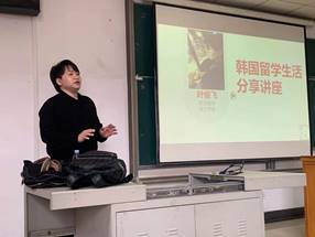上午10:00讲座正式开始,首先由郑民源老师简单介绍了一下本次讲座主讲人,随后由亚洲留学规划专家叶俊飞老师开始韩国留学生活的分享。叶俊飞老师首先对自己的个人经历进行了简单的介绍,叶俊飞老师有8年的国外留学经历,于2010年起,分别在韩国的高丽大学、日本的神户大学、台湾国立中正大学有不同时间的留学和交换生生活。叶俊飞老师在向同学们简单地介绍了韩国的特点、地理位置及风土人情后针对韩国留学的问题进行了经验的分享,韩国作为中国的临近国,每年会有许多中国留学生前往韩国进行留学深造,韩国热门的留学专业有商科类、传媒类、工科类和艺术类,每年大四下学期开学前后申请,申请周期至少为半年,每年3月和9月份开学。最后,作为有8年留学经历的规划专家,叶俊飞老师给在座想要留学的动画专业的同学给予了自己留学经验的分享,对想要留学的同学给予了三点建议:“立志”、“择校”、“交友”,“立志”即作为大国人,在外留学要有自己的志向和志气,努力学习并申请奖学金,让自己的履历增添光彩;“择校”即在自己的能力范围内选择申请最好的学校;“交友”即在外留学要将目标放远,广结益友。