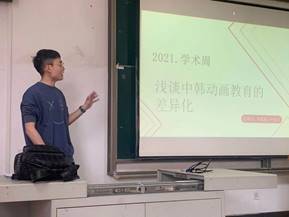 2021年5月6日,由艺术设计学院郑民源老师主办的中韩动画教育的差异化学术讲座在武汉工程大学流芳校区二教411教室顺利举办。亚洲留学规划专家叶俊飞老师、武汉工程大学艺术设计学院优秀教师郑民源老师担任本次主讲人,参加本次讲座的有艺术设计学院大一至大四全体动画专业同学。