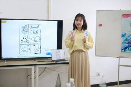 第五组带来汇报分享的是来自武汉理工大学的同学,小组选择的关键词是“非遗”。设计师们的非遗作品大多是展现非遗本身,而同学们想要突出的点是人们关注非遗的视角,希望用打破常规的、特殊的方法向观众展现武汉特色。