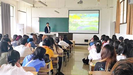 本次报告由环境设计系景观方向的付琪博士主讲,付老师首先为同学们介绍了在现代社会植物景观设计研究的重要性,并通过多个实际案例说明植物疗养、康复的功能;并借由自己亲身游历武汉单洞花市,分享了花卉带给自己的体验和感受。同时给同学们展示了各类图片和诗句,给大家讲解植物营造的环境和作用,最后谈到了电视剧《虎妈猫爸》中种花可以有效缓解儿童抑郁的情节,他深有感触,鼓励在座的同学们要多出去走走,接触大自然,缓解学习生活中的压力。