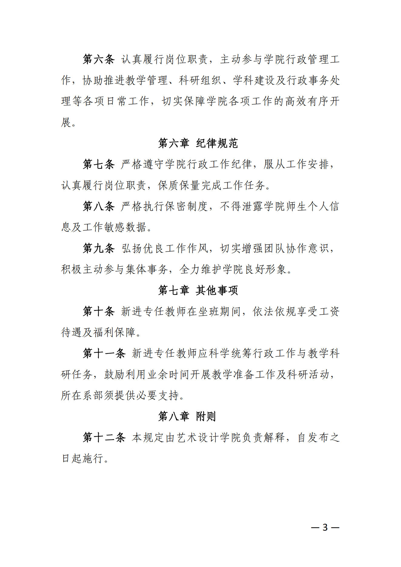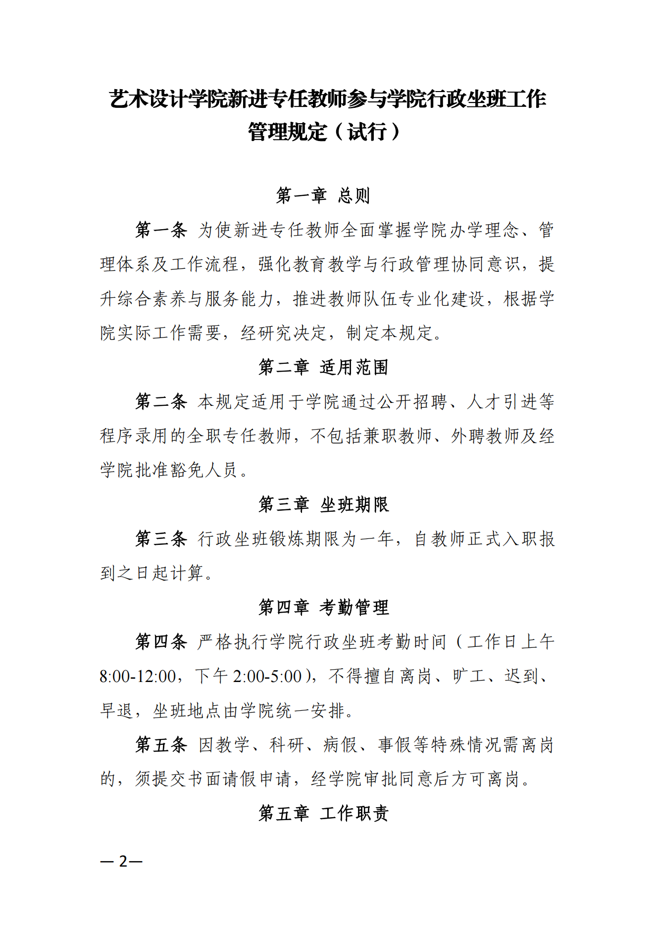 关于印发《艺术设计学院新进专任教师参与学院行政坐班工作管理规定(试行)》的通知