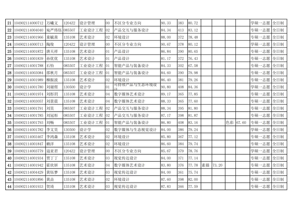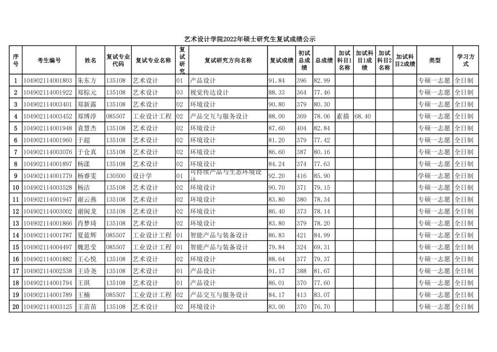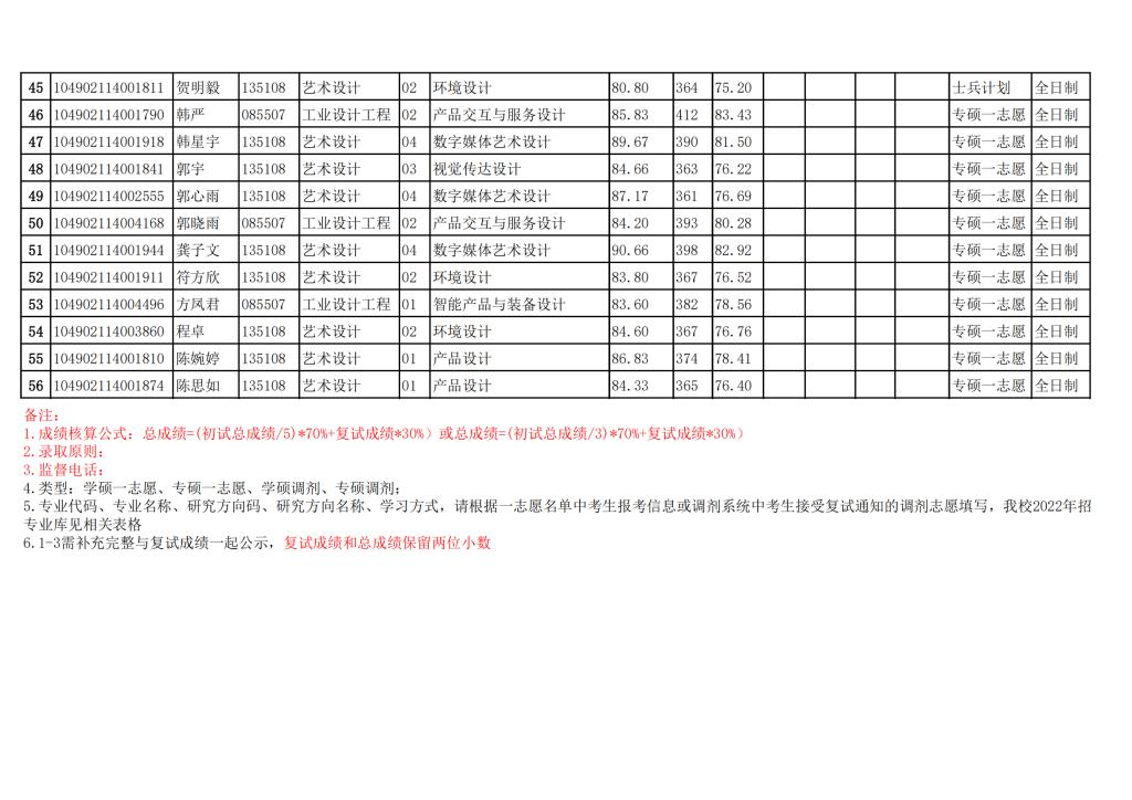 艺术设计学院2022年硕士研究生复试成绩公示(一志愿上线)