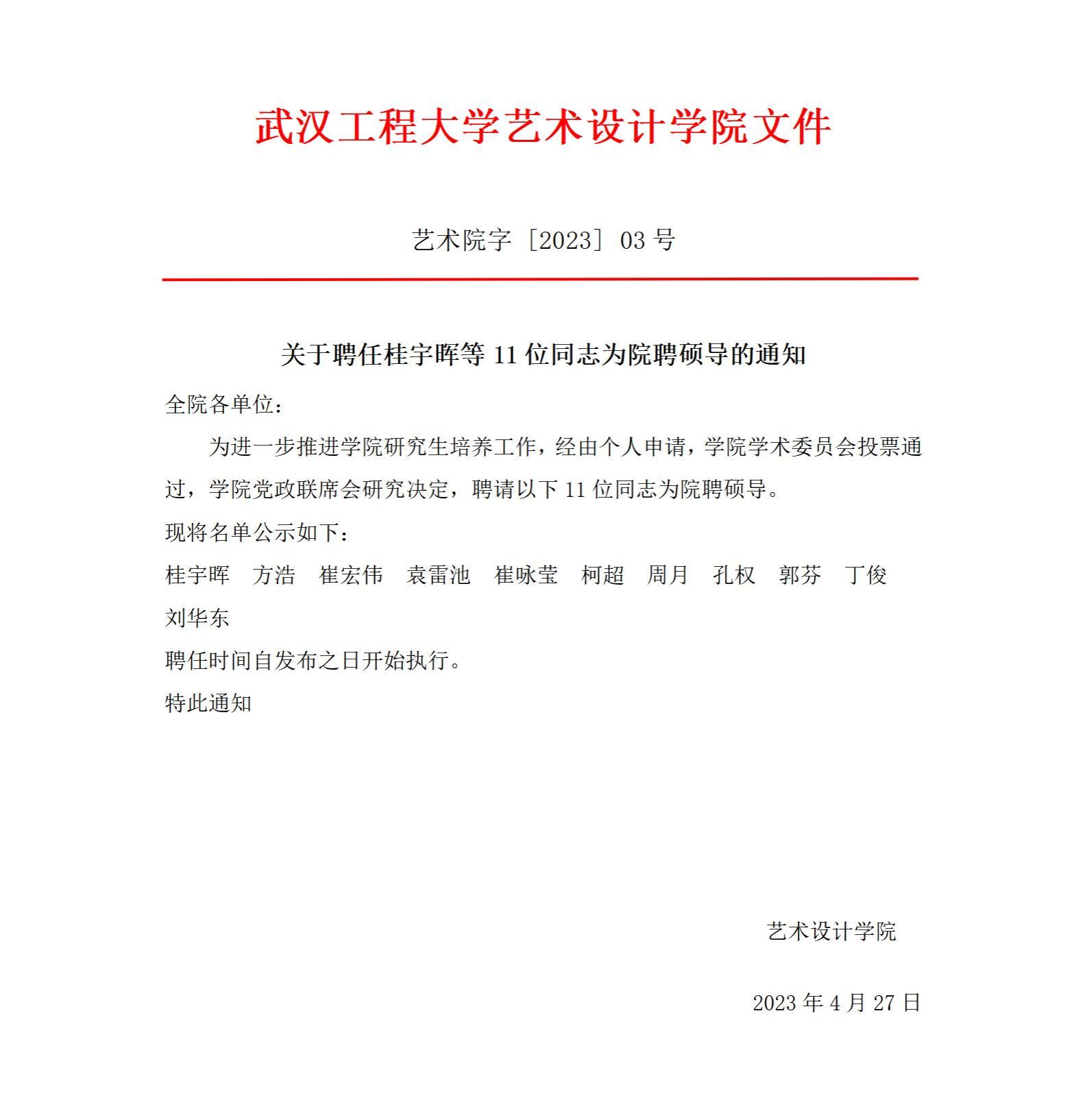 关于聘任桂宇晖等11位同志为院聘硕导的通知