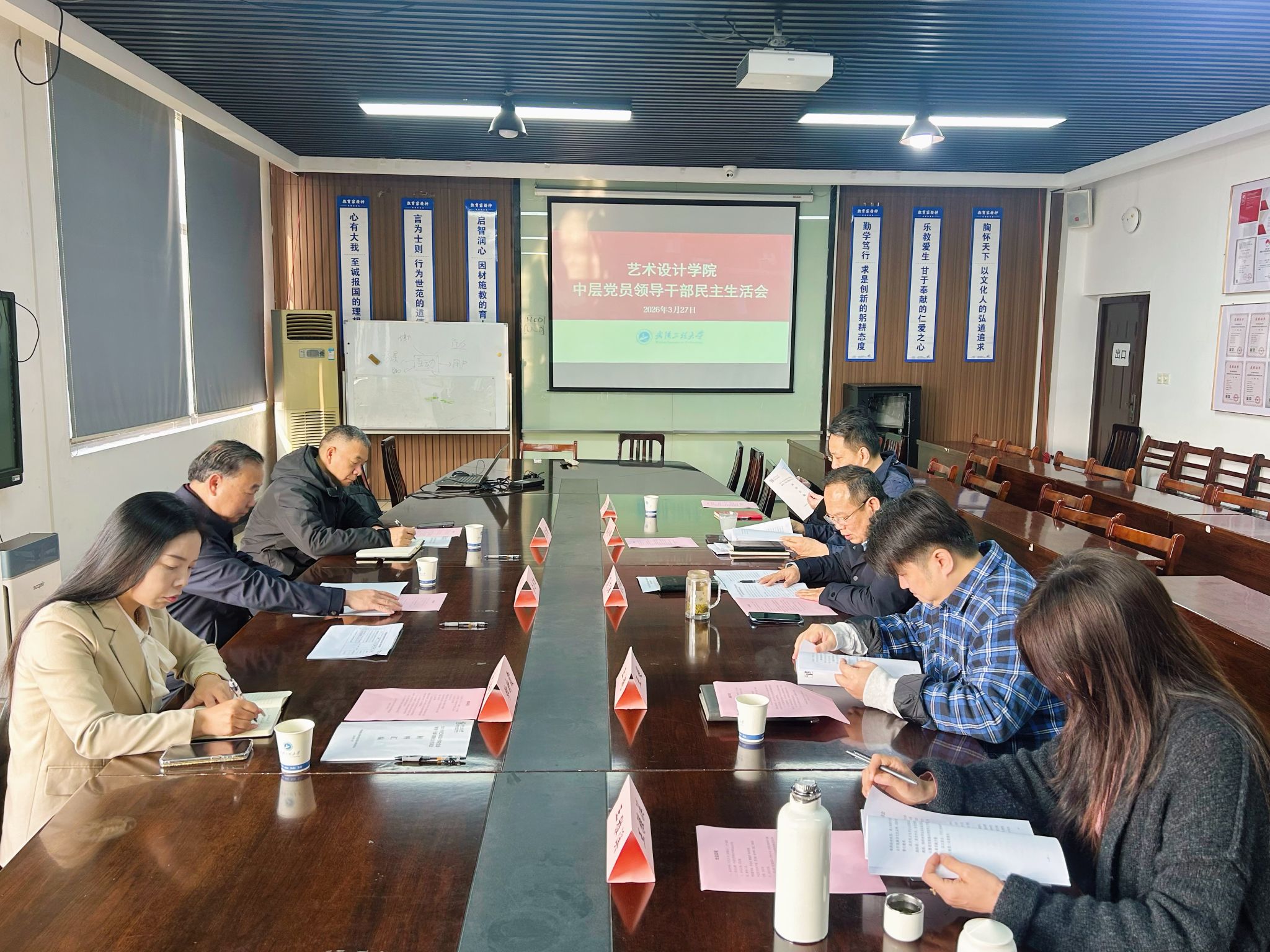 本网讯(通讯员 谢敏)3月27日上午,艺术设计学院在3-8会议室召开2025年度中层党员领导干部民主生活会,校党委副书记李志旭、校工会常务副主席鲁晓君、党政办公室主任科员郑新霞到会指导。会议由学院党委书记夏志敏主持,学院全体领导班子成员参加会议。