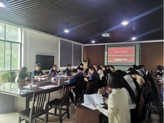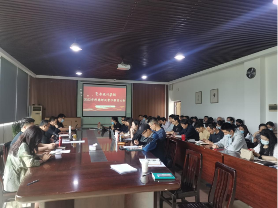 (通讯员刘娉)为切实加强艺术设计学院师德师风建设,落实“师德师风第一标准”要求,推进学校2022年师德师风警示教育活动部署,引导广大教师涵育高尚师德,正心正行,不辱使命,推动师德建设常态化长效化,我院于5月12日下午2:10在学院会议室召开2022年师德师风警示教育大会。学院党委书记夏志敏主持会议,全体教职工参加会议。