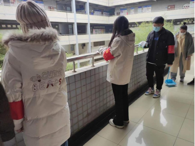 活动当日下午,同学们准时在艺术楼前集合。老师结合现场具体情况进行工作部署后,同学们便投入了紧张而有序的卫生清洁工作中。