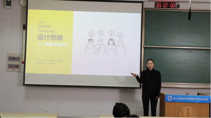 比赛分为初赛和决赛两个阶段。陈思老师在9月通过了学院教师基本功竞赛的选拔,随后三个月的时间精心打磨《设计思维》课程精选教学片段。备赛期间,学院高度重视,学院领导和教学名师在教学方案设计、比赛课件制作、现场教学打磨等方面给予了全方位帮助。