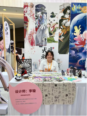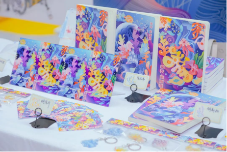 艺术设计学院动画系、视觉传达系受邀派出十一位优秀学生设计师进行现场作品展演售卖,设计作品涉及传统文化数字化创新、文物保护、数字藏品、插画等种类。