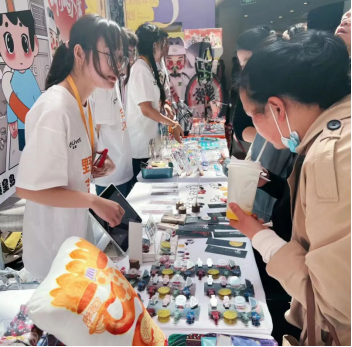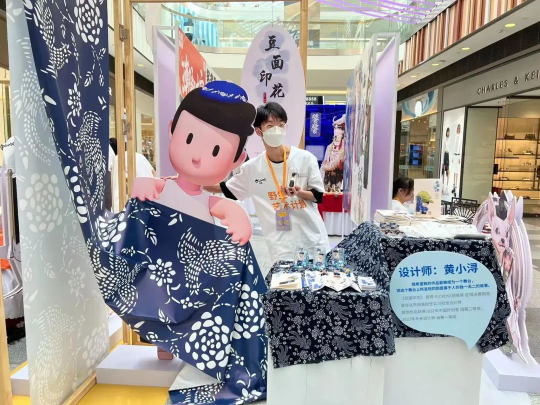 “在本次活动中,我感触最深的其实不在于售卖,而在于与大众面对面沟通交流豆面印花的过程。我展示的作品是围绕一个即将失传的非遗——豆面印花进行创作的,在展示过程中我发现大家对豆面印花其实是好奇的,大部分来到我的展台前的人们在听我介绍豆面印花的故事时都是一种较为投入的状态。”动画系20级黄小浔说,“非常感谢荟聚与动画系提供了这样一个机会,让我的作品直接展示在大众面前,我也会继续努力让我的作品更加丰富更加完善。”