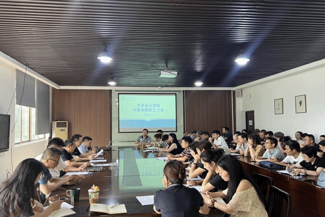 (通讯员 李梓溪)7月6日下午,艺术设计学院在学院会议室召开教职工大会,布置学期末工作。会议由学院党委书记夏志敏主持,学院全体教职工参会。